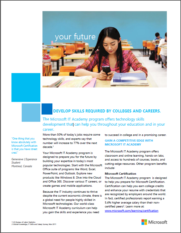 MTA prepares you for certification and provides a foundation for a career in IT. It gives you the confidence to succeed in advanced studies and future vocational endeavors.